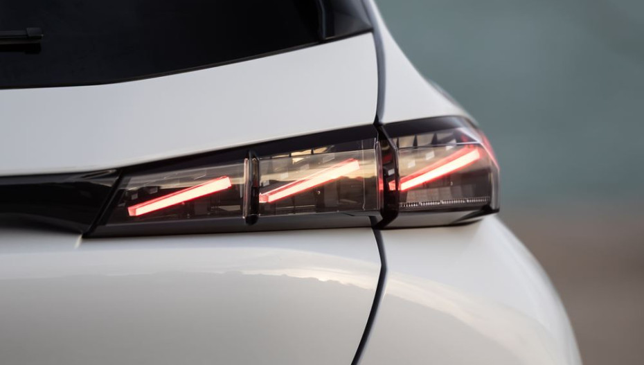 La Peugeot 308 offre une signature lumineuse arrière avec trois griffes en LED inclinées positionnées de chaque côté du bandeau noir laqué qui surplombe le blason Peugeot.