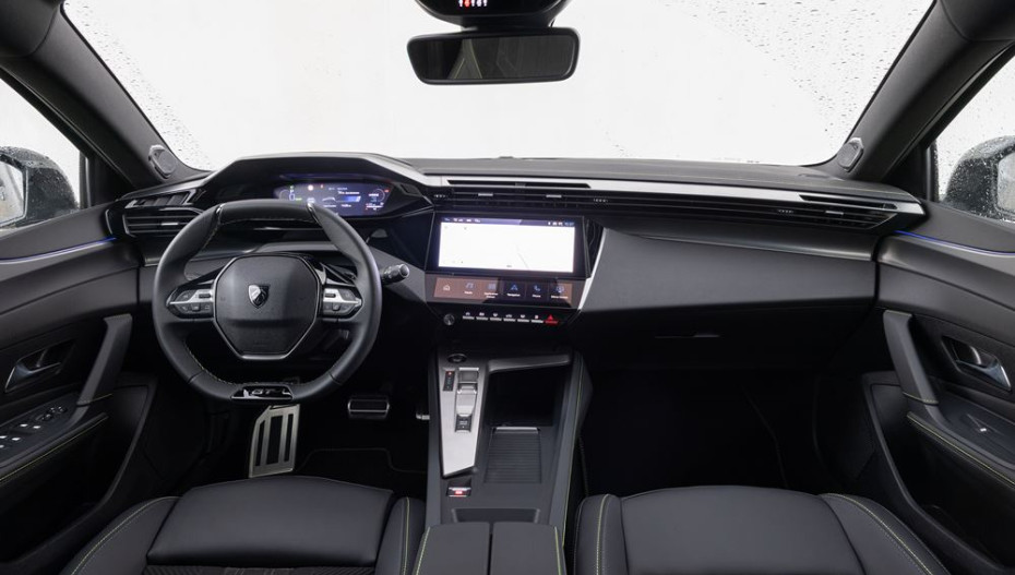 La planche de bord de la 308 repose sur une architecture « high-vent » qui place les aérateurs juste en face de la tête des occupants. Cette architecture permet à l'écran tactile central de 10 pouces, implanté légèrement plus bas que le combiné digital de se rapprocher de la main du conducteur en s'intégrant naturellement au milieu du volume général de la planche de bord.