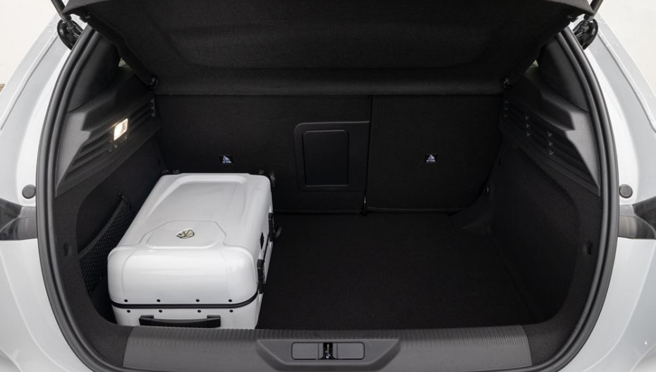 Le volume de coffre de la berline 308 atteint 412 litres d'eau dont 28 litres d'eau de rangements compartimentés sous tapis (314 litres en hybride rechargeable).